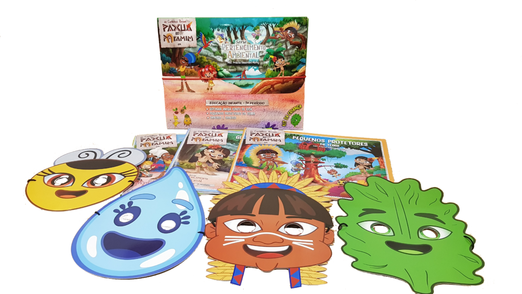 Conteúdos com atividades paradidáticas diversas sobre a educação ambiental e seus aspectos, com abrangências nas 12 (doze) experiências da DCNEI (2010) e os campos de experiências da educação infantil na BNCC (2017): atividades de colorir (coordenação motora fina e concentração), tracejados (desenvolvimento de habilidades motoras finas e concentração), labirintos (coordenação motora e senso direcional), QR Code com um CLIP de animação e musicalização do Carlinhos Brown, para cada tema, com a inclusão de uma máscara por cartilha dos personagens da TURMA PAXUÁ E PARAMIM.